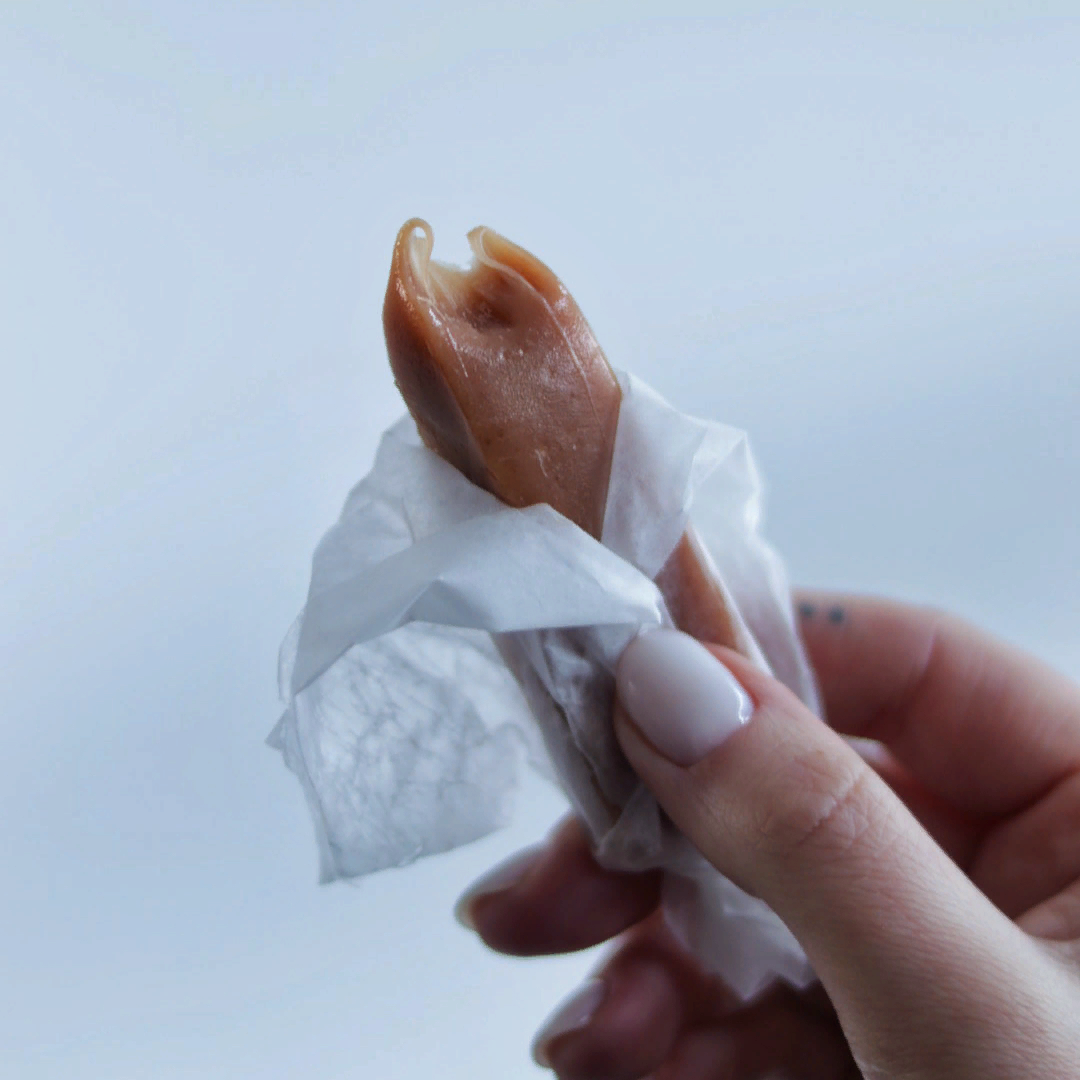 Мягкая тягучая конфета с карамельным вкусом и добавлением гималайский розовой соли. Вкусы ириски-тянучки: